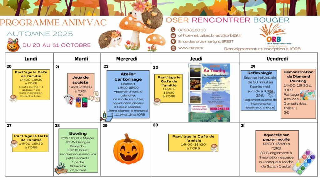 Venez participer aux animations proposées pendant les vacances de la Toussaint du 20 au 31 octobre ! Vous avez le choix avec les Jeux de société, le Café de l’amitié, […]